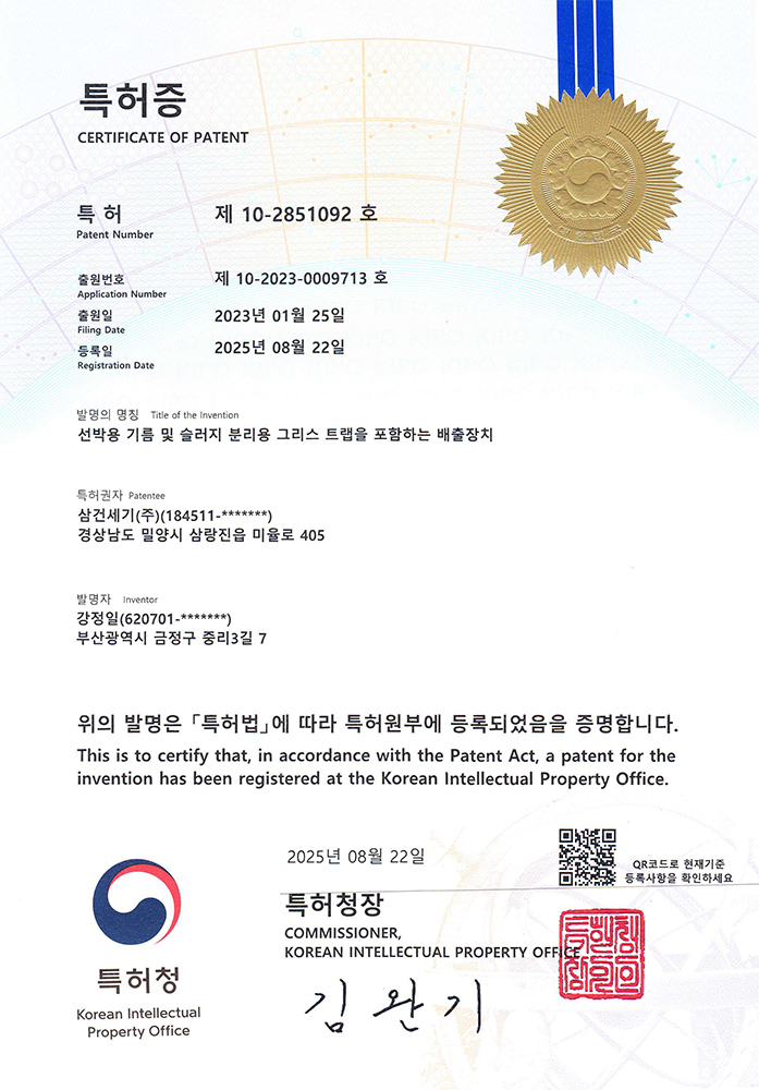 A-77. 특허증(10-1675805호) 배관용 내외면 코팅장치외